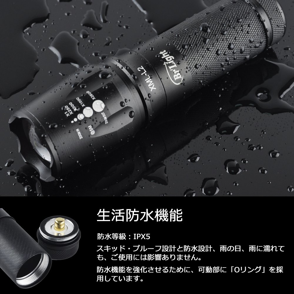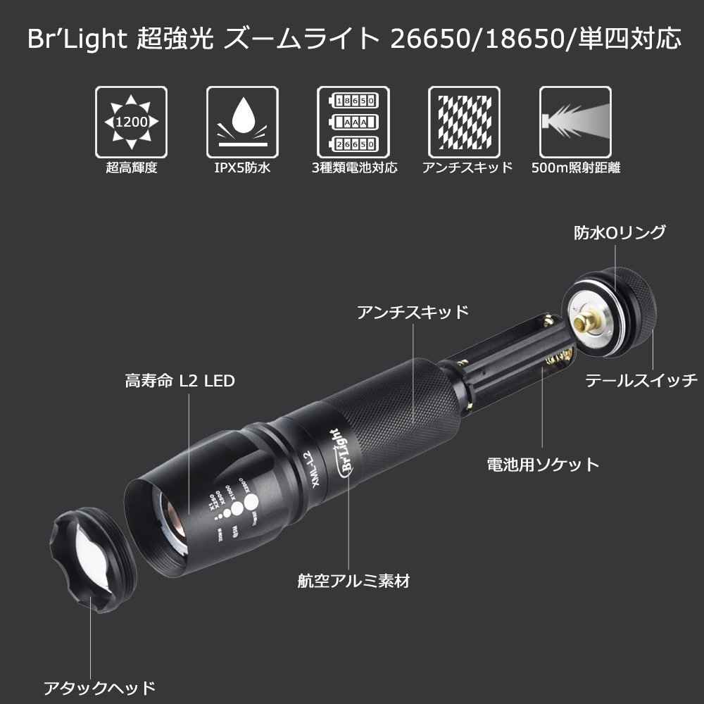 Br'Light US Ultra high brightness LED made by CREE company XM-L2 installed Super strong light zoom light 3 types Battery compatible
