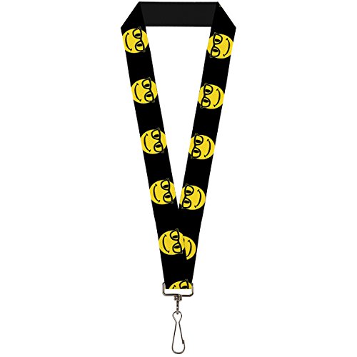 -. Binding : Apparel -. Brand : Buckle Down -. Department : unisex-adult -. Feature : This lanyard is made out of stretchy nylon, and has a stainless steel clip to easily detach your keys / Show off your favorite style / The lanyard is 1.0 inches wide, and a standard length -. Label : Buckle-Down -. Manufacturer : Buckle-Down -. MPN : LY-1.0-W31434 -. NumberOfItems : 1 -. PackageQuantity : 1 -. PartNumber : LY-1.0-W31434 -. ProductGroup : Apparel -. ProductTypeName : ACCESSORY -. Publisher : Buckle-Down -. Studio : Buckle-Down -. Title : Buckle-Down Lanyard - 1.0" - Nerd Happy Face Black/yellow/black Accessory
