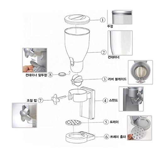 -. Feature : 1. It Is Double Protected Inside And Outside, It Is Made Of Silicone Material In The Body Stopper Part, So It Is Possible To Store The Contents For A Long Time Without Becoming Safer And Damp. / 2. Because Inner Material Is Made Of Soft Material, The Control Of Quantity Of Contents Such As Cereal Is Finer, And Sealing Power Is Also Excellent. / 3. When You Use It, Even If The Debris Such As Cereal Or Grain Falls, It Goes Into The Base Of The Stand And Is Clean. / 4. Cleaning Can Be Done Simply By Removing The Bottom Part When Cleaning. / 5. Since Each Part Of The Product Is Detachable, It Is Easy To Wash And Is Hygienic With Transparent Material Inside.