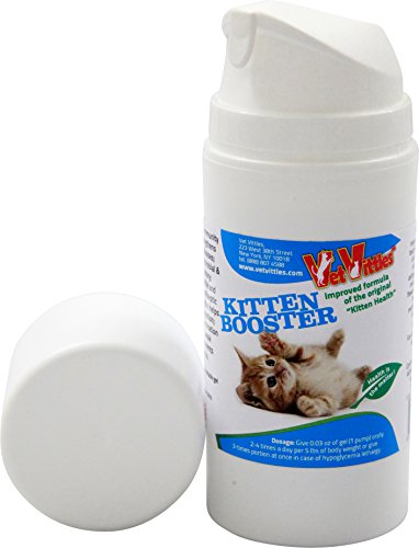 - Feature : Boosts strength, immunity and vitality, strengthens resistance to diseases; antioxidant, antimicrobial / anti-inflammatory; stimulates appetite and aids digestion; antiseptic for colds and coughs; / helps clear chest congestion; protects while vaccination and support weak youngsters; prevents hypoglycemia. / VetVittles tm "Kitten Booster" (improved formula of the previous "Kitten Health") Boosts strength, immunity and vitality, strengthens resistance to diseases; antioxidant, antimicrobial & anti-inflammatory; stimulates appetite and aids digestion; antiseptic for colds and coughs; helps clear chest congestion; protects while vaccination and support weak youngsters; prevents hypoglycemia. chicken Flavor Manufacturer's name and address: Made in USA, source of US certified herbal remedies: San Francisco Herb & Natural Food Co.; Vet Vittles, 223 W 38th Street, New York, NY 10018; tel. (888) 807 4588; vetvittles.com Net quantity statement: 2 Oz of highly palatable gel per bottle.Ingredients: Honey, agar-agar and herbal remedies: alfalfa herb, ashwagandha root, astragalus root, dandelion root, fo-ti root, hibiscus flower, hops flower, hyssop herb, licorice root, marshmallow root, neem leaf, shavegrass. Instructions: For cats only. Keep out of reach of children.Precaution:Contraindicated in severe kidney insufficiency and acute gallbladder inflammation. Dosage: Give 0.03 oz of gel (1 pump) 2-3 times a day per 1 lb of body weight into mouth or give 2-times portion at once in case of hypoglycemia lethargy. Best before December 2013.Instructions: For dogs only. Keep out of reach of children. Precaution: Contraindicated in severe kidney insufficiency and acute gallbladder inflammation. Dosage: Give 0.03 oz of gel (1 pump) 2-4 times a day per 5 lbs of body weight into mouth or give 3-times portion at once in case of hypoglycemia lethargy. Best before December 2013 / Abyssinian, American Bobtail, American Curl, American Shorthair, American Wirehair, Balinese, Bengal, Birman, Bombay, British Shorthair, Burmese, Chartreux, Cornish Rex, Cymric, Devon Rex, Egyptian Mau, Exotic Shorthair, Havana Brown, Himalayan, Japanese Bobtail, Javanese, Korat, Maine Coon, Manx, Munchkin, Nebelung, Norwegian Forest Cat, Ocicat, Oriental, Persian, Ragdoll, Russian Blue, Scottish Fold, Selkirk Rex, Siamese, Siberian,Singapura, Snowshoe, Somali, Sphynx, Tonkinese, Turkish Angora, Turkish Van