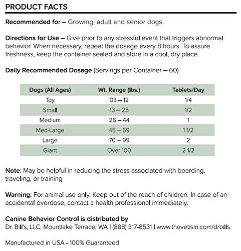 ALL-NATURAL DOG CALMING SUPPLEMENT - Dr. Bill's Canine Behavior Support contains natural ingredients that help reduce the negative effects of stress and anxiety in your dog