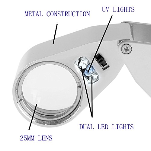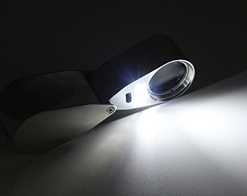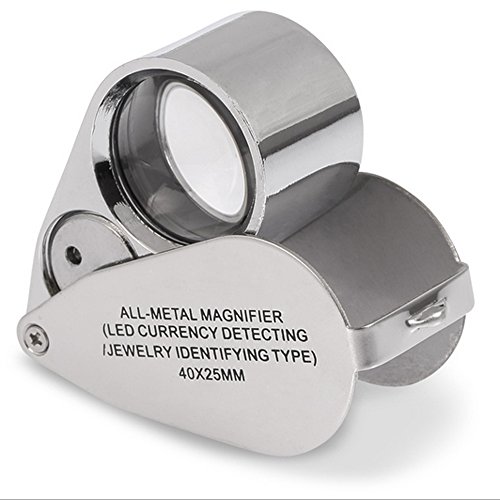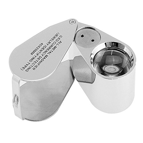 DREAMZE All-Metal 40x 25mm LED Lighted Illuminated Jewelers Eye Loupe Jewelry Magnifier for Gems Jewelry Rocks Stamps Coins Watches