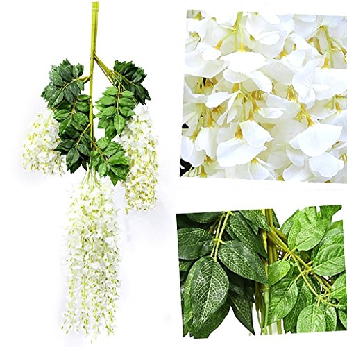 Adeeing 12x Artificial Flower Wisteria Garden Hanging Vine Wedding Decor (White)