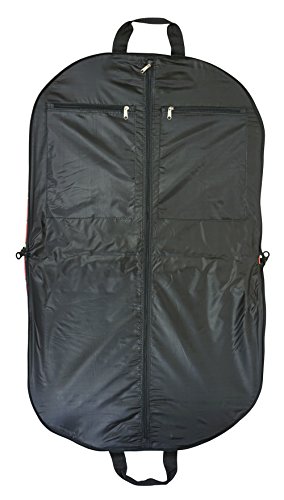 Product Description Take your dress clothes with you confidently on vacation with this stylish garment bag! This piece of lightweight luggage is great for jet setters and can be used for a quick, close by staycation or for a weekend excursion to your favorite retreat. Made out of durable 600 Denier Polyester fabric in a chic print. This garment bag folds in half and can be hung by its metal hook. The interior of this bag features multiple zipper pockets to hold shoes and accessories. Perfect for transporting cheer uniforms or theatre costumes to and from while keeping them clean and wrinkle free! Organize your closet and keep delicate, high quality items neat and pristine. 0