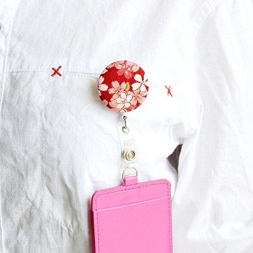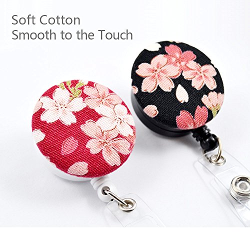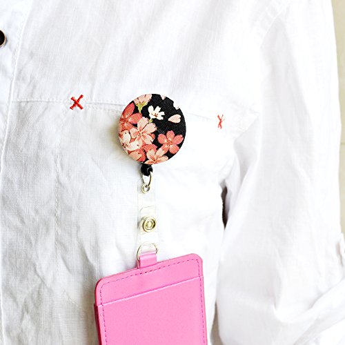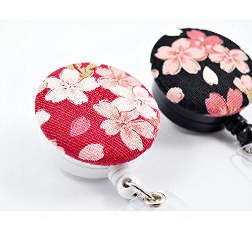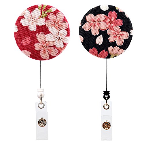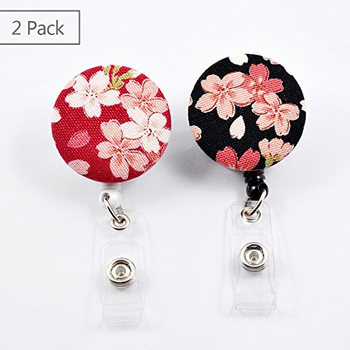 Qinsuee Sakura Retractable ID / Name Badge Holder with Alligator Clip, 2 Pack