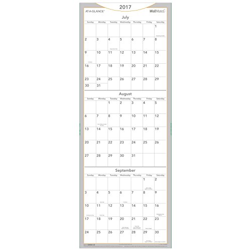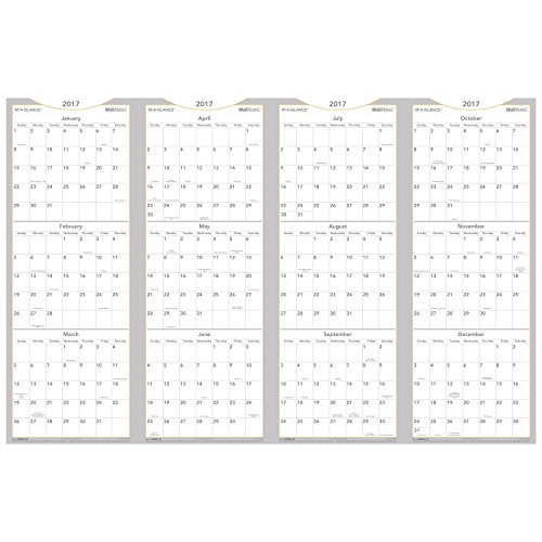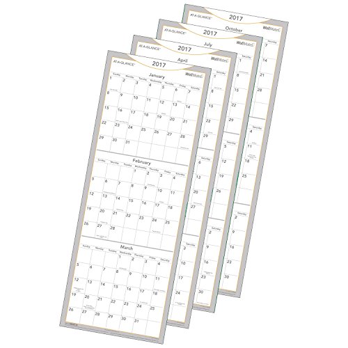 -. Title : AT-A-GLANCE Dry Erase Wall Calendar 2017, Self-Adhesive, 9 x 24", 4 Quarterly Panels, WallMates (AW6062-28)