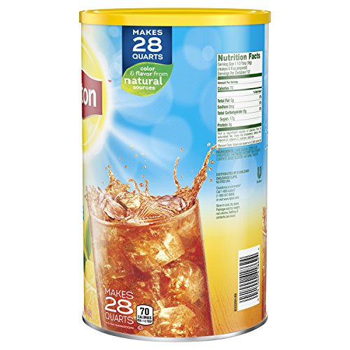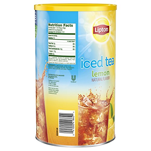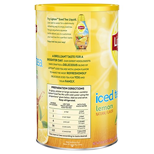 Lipton’s expert mixologist have crafted a delicious blend of Lipton Iced Tea Mix with Lemon flavor to make the most refreshingly delicious iced tea for you and your family. Our Iced Tea Mixes are made from real tea leaves, real cane sugar and flavors sourced from natural sources, so the taste is always delicious and satisfying. Lipton iced tea is the perfect addition for any of your meals because it is tasty and refreshing. So don’t just default to the usual, enjoy the sweet, Lemon filled flavor taste of Lipton Lemon Iced Tea Mix. A brilliant taste for a brighter day! Lipton Iced Tea Mixes are the easiest way to prepare delicious and refreshing iced tea in just seconds. Just pour 4 tbsp of Lipton Iced Tea Mix in a glass, add 1 cup of cold water and enjoy a perfect glass of iced tea! This mix makes 28 quarts of iced tea. At Lipton we never compromise on quality. Only the best tea leaves go into our iced tea mixes. All our tea leaves are sourced from around the world and expertly blended so you can enjoy a premium quality experience. You will reward yourself with the fresh, delicious taste that makes iced tea a great choice.Feature