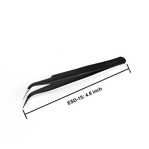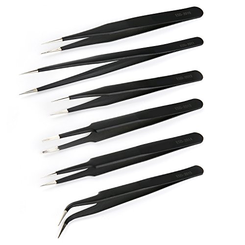 6pcs ESD Tweezers Set Kit Fine Curved Tip Tweezers for Eyelash, Jewelry-making, Hobbies (6 in 1)