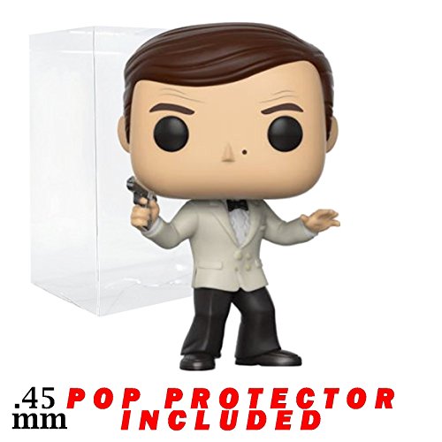 -. Feature : Stylized Roger Moore in White Tux collectible stands 3 ¾ inches tall, perfect for any James Bond fan! / SHIPS in .45 mm acid-free PET plastic Pop Protector with peel-able protective film / Bubble Wrapped for added protection during shipping / Push-lock tab that adds structural integrity to the box when formed / Exclusive sticker affixed