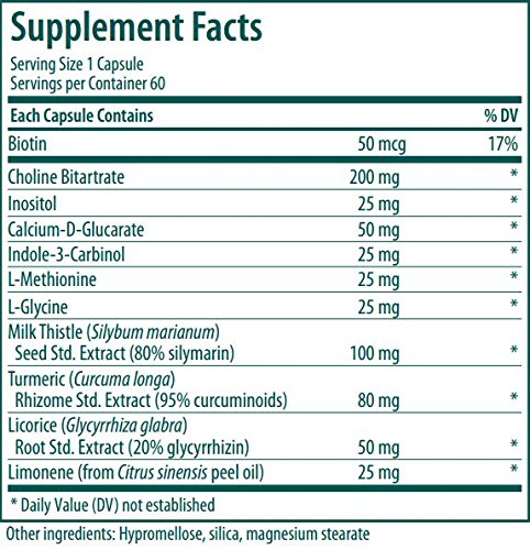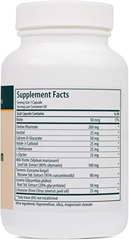 Supports healthy liver function and detoxification. Milk thistle seed extract and curcumin promote antioxidant support by increasing levels of the endogenous antioxidant glutathione (GSH) and decreasing lipid peroxidation. Provides standardized extracts from milk thistle seed, turmeric rhizome and licorice root. Includes lipotropes choline and L-methionine. GENESTRA BRANDS Liver Support and Detoxification provides a combination of nutrients and herbs that promote a healthy liver, the primary site for the detoxification of metabolic waste products. Research demonstrates that milk thistle increases the activity of detoxifying enzymes in the liver. Along with active ingredients in turmeric and licorice, milk thistle supports and enhances the body's antioxidant defense system. Milk thistle and licorice also promote a healthy cytokine balance to further maintain liver health. Lipotropic compounds, including choline and L-methionine, are also included to support healthy lipid metabolism in the liver.Feature