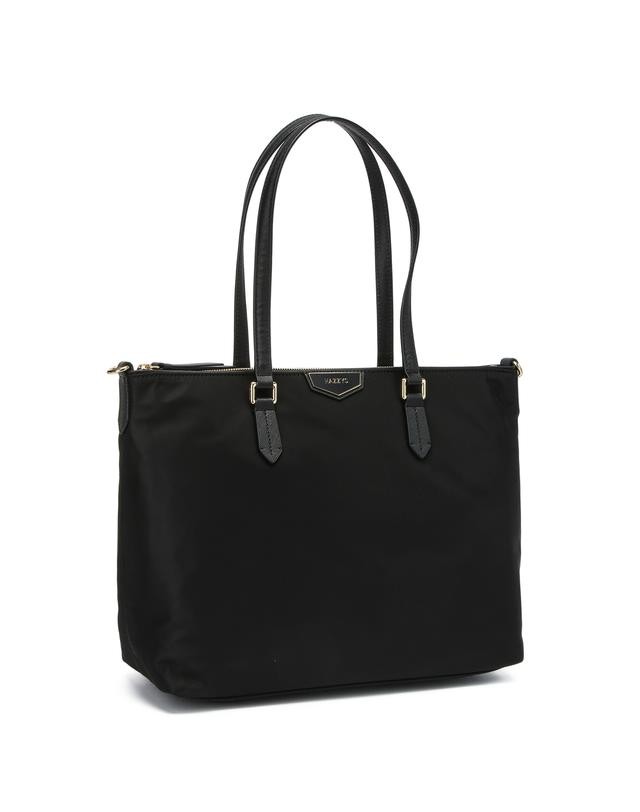 가죽을 배색하고 상단에 오각형의 로고 장식을 매치하여 포인트를 준 숄더백입니다.