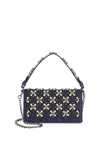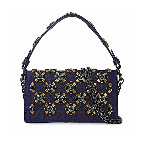 Tory Burch Tory Navy Blue Cleo Embellished Gold Metal Holiday Cleo Fold Over Clutch Bag New
