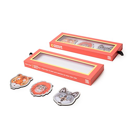 Premium Quality Aluminum Refrigerator Magnet Gift Set by Real Cool Vibe Featuring a Collection of Jungle Animals