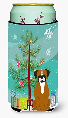 Caroline's Treasures Merry Christmas Tree Flashy Fawn Boxer Tall Boy Beverage Insulator Hugger BB4241TBC, Multicolor