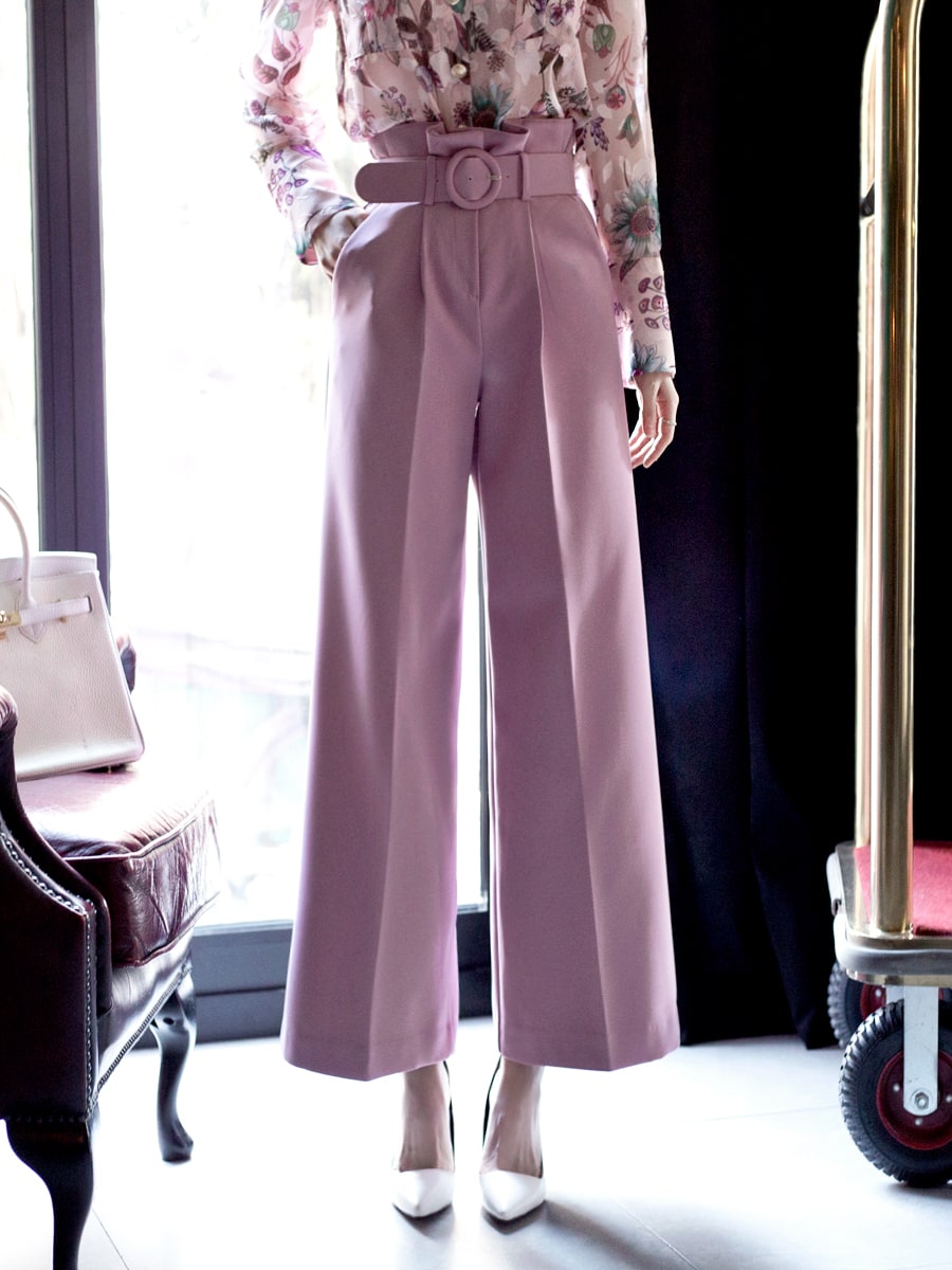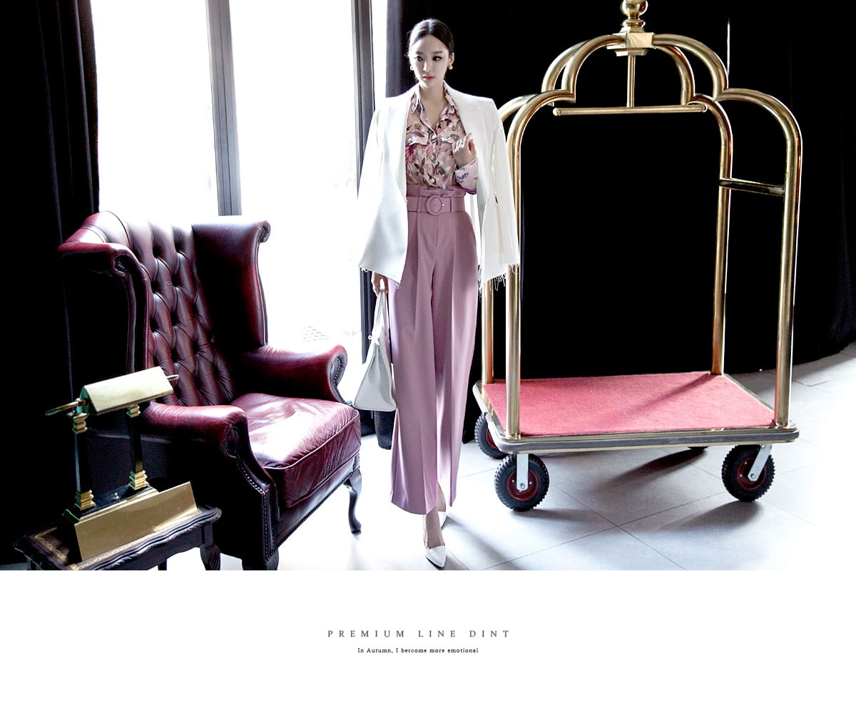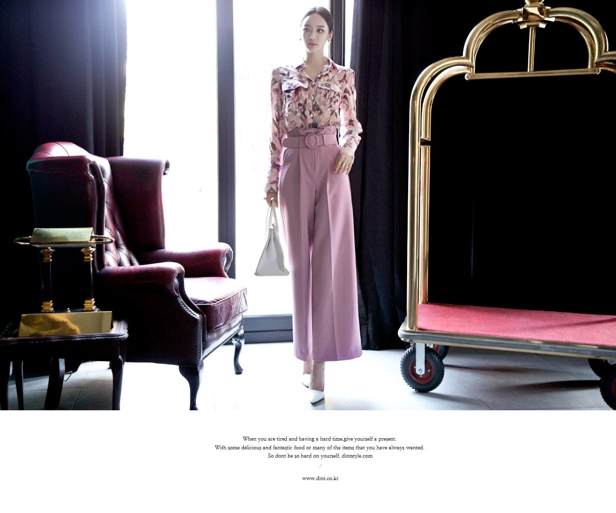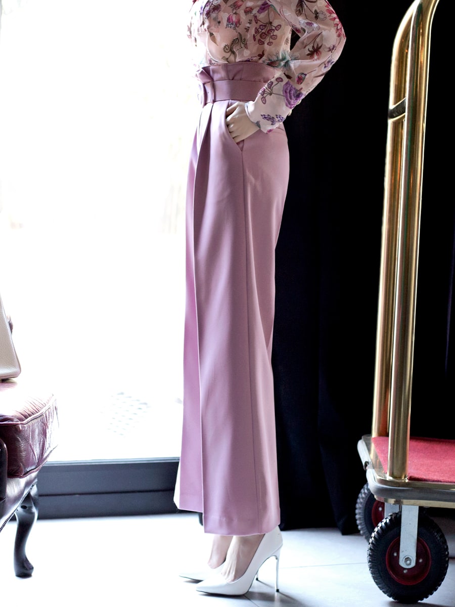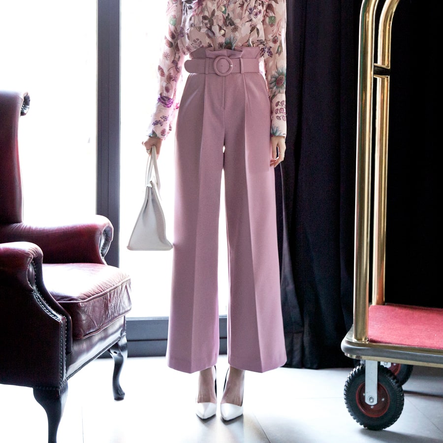 P1815 로우 핀턱 슬랙스 팬츠(벨트set) Pink