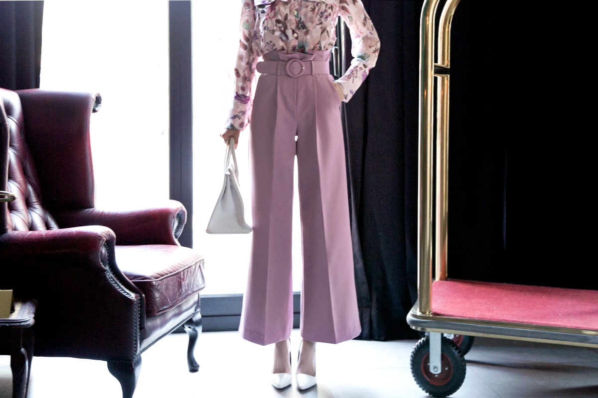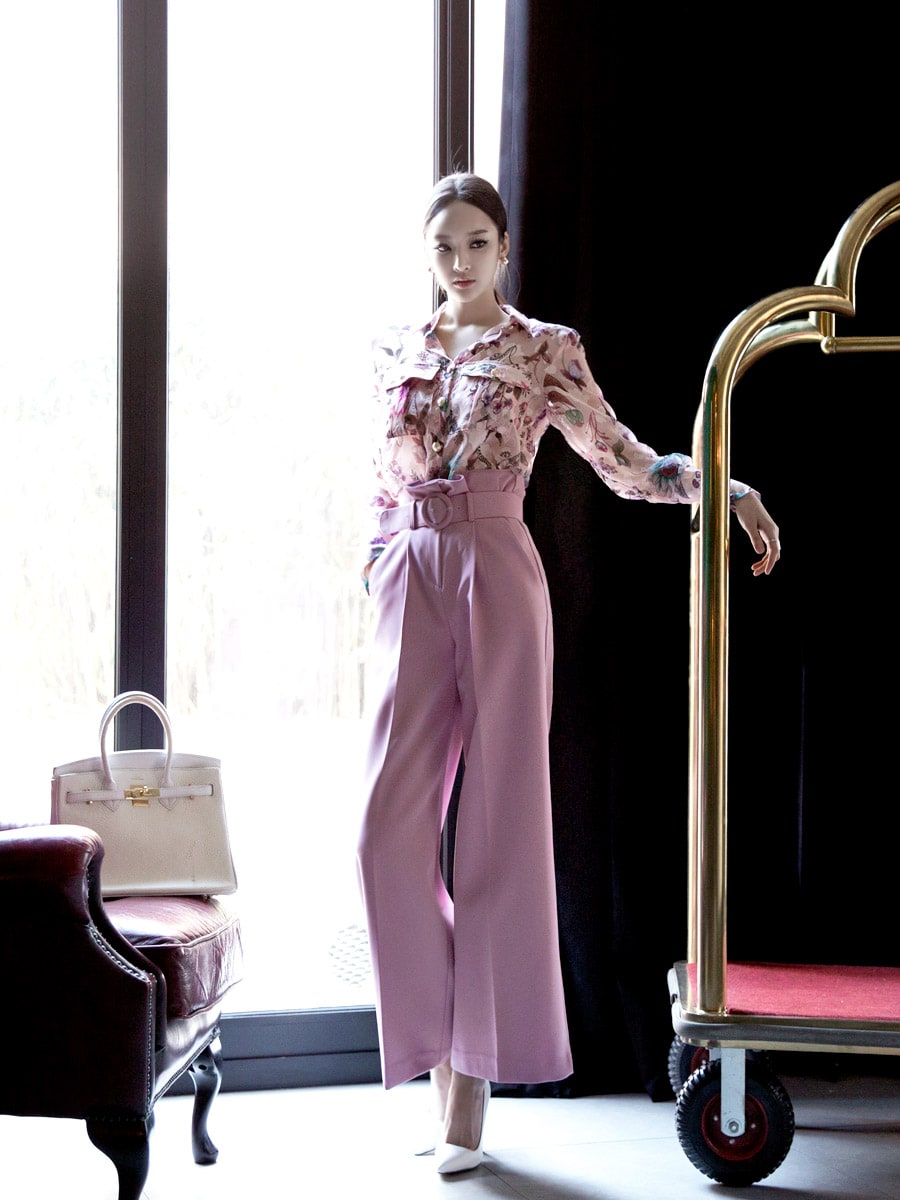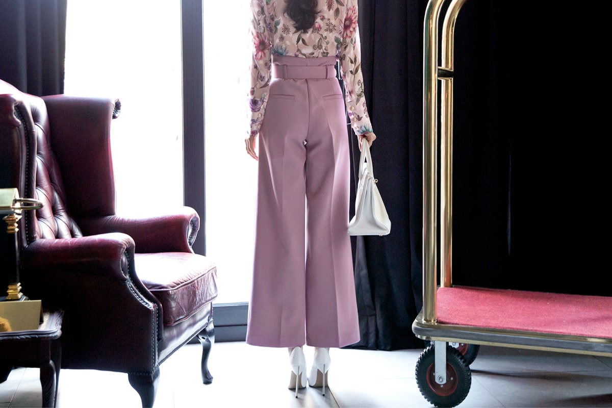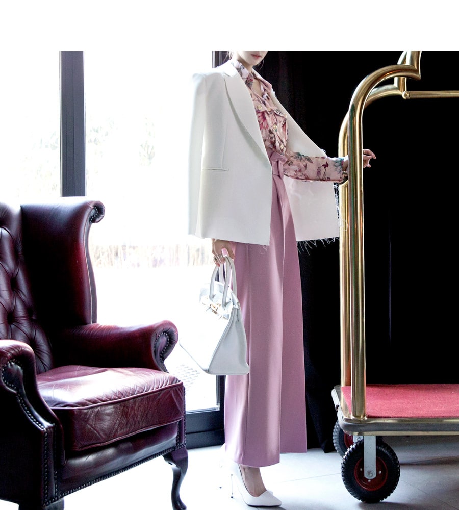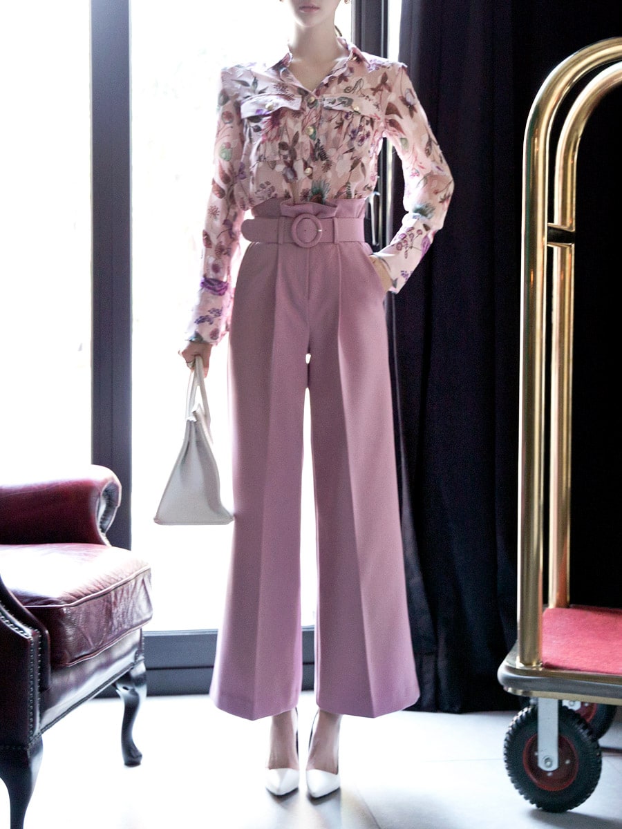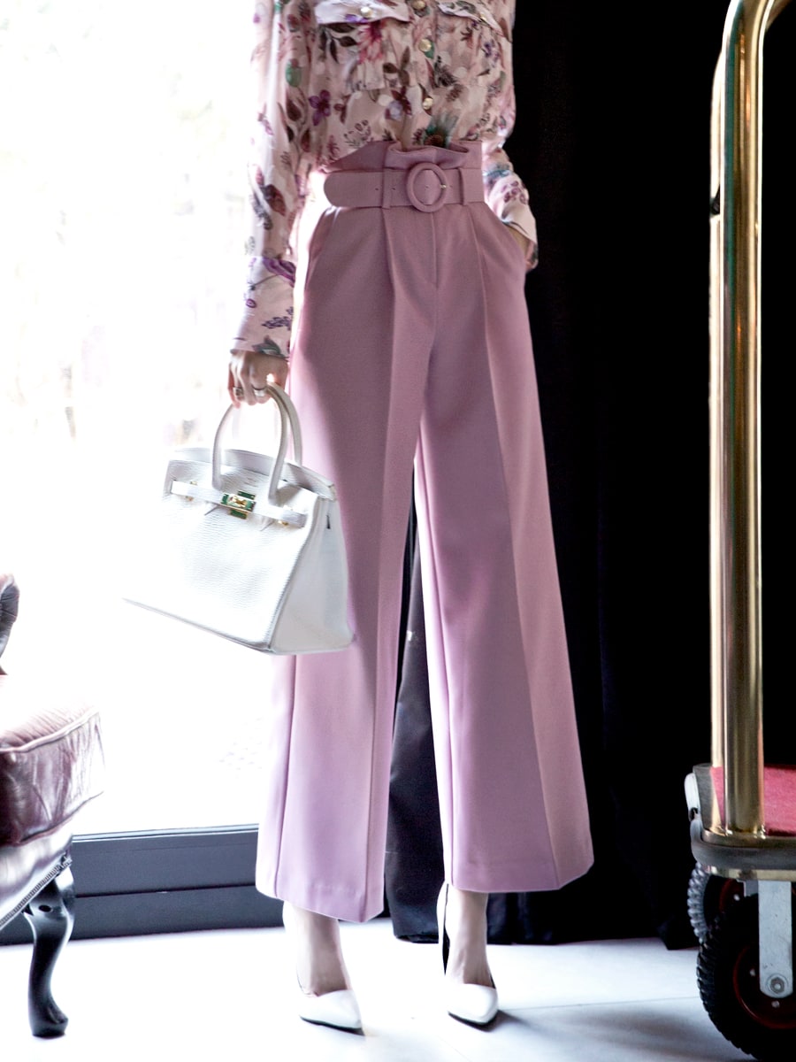 P1815 로우 핀턱 슬랙스 팬츠(벨트set) Pink