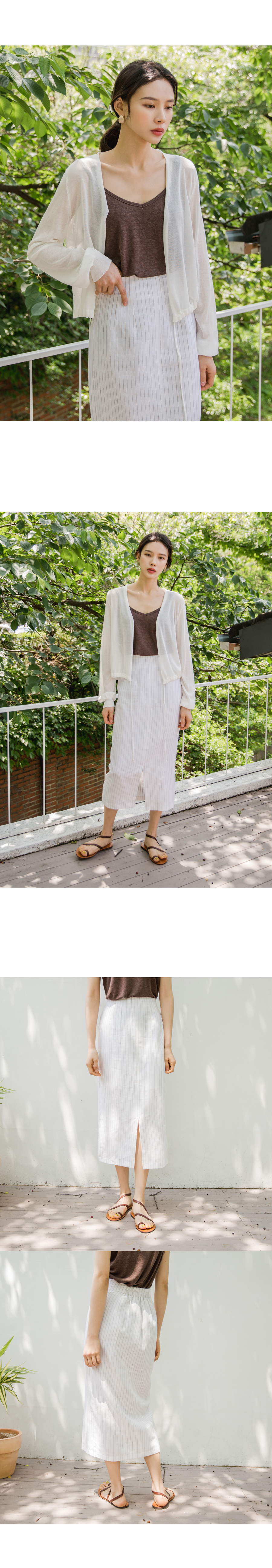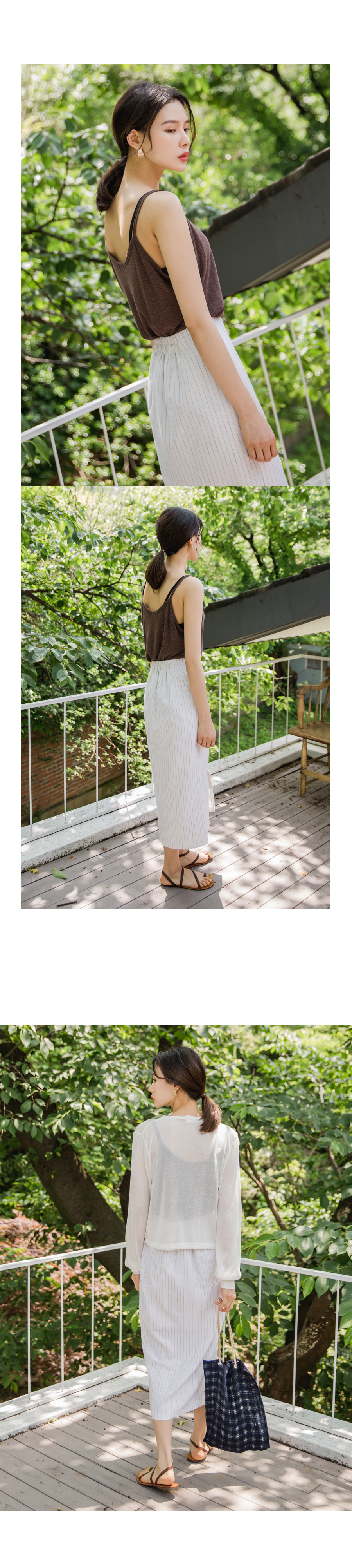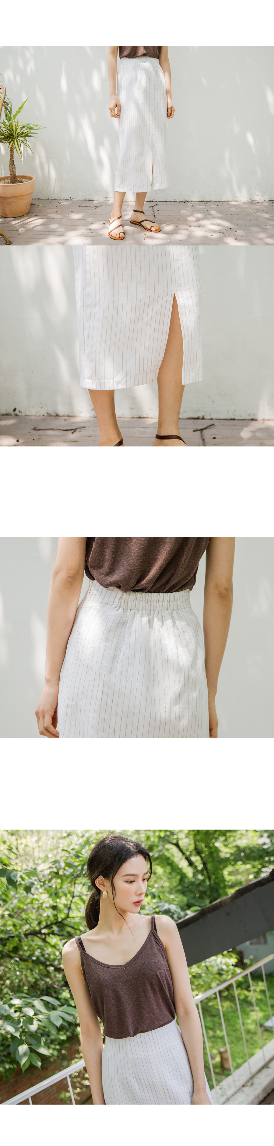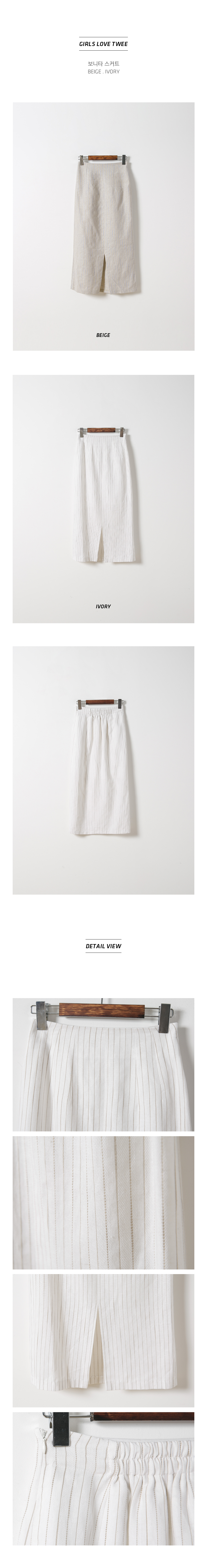 MD COMMENT베이직하면서도 페미닌한 무드의롱트임 스커트입니다 H라인 실루엣으로 자연스러운 볼륨감을살리면서 바디라인이 슬림하게 연출이되구요 밋밋하지않게 잔잔한 컬러의 스트라이프 패턴으로 페민니한 룩부터 러블리하게 어디에나 매치하기좋은컬러로 즐기시기좋아요 뒷밴딩,지퍼디테일로 간편하게 오픈,클로징이 가능한 아이템이에요 !