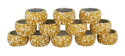 -. Binding : Kitchen -. Brand : ShalinIndia -. Color : Cream -. Feature : Includes a total of twelve napkin rings / Universally sized for table linens at 1.5 inches / Covered with metallic glass beads / Artisan made table decor produced in India / Lovely gift for any occasion -. Label : ShalinCraft -. Manufacturer : ShalinCraft -. ProductGroup : Home -. ProductTypeName : HOME -. Publisher : ShalinCraft -. Size : 1.5 Inch -. Studio : ShalinCraft -. Title : ShalinIndia Napkin Rings Set of 12 Handmade With Glass Beads