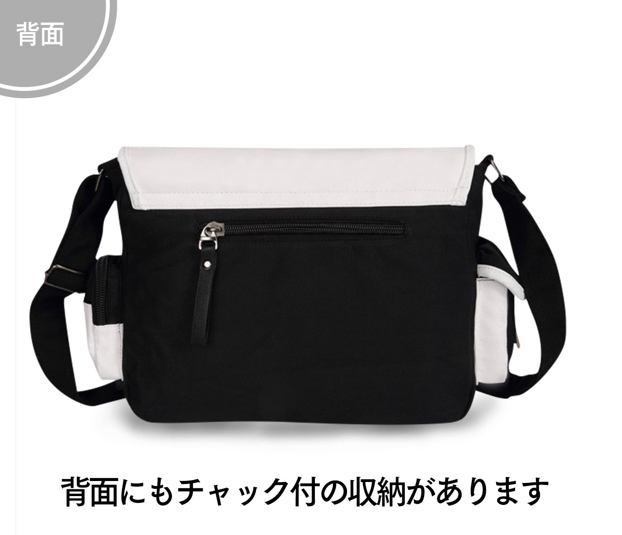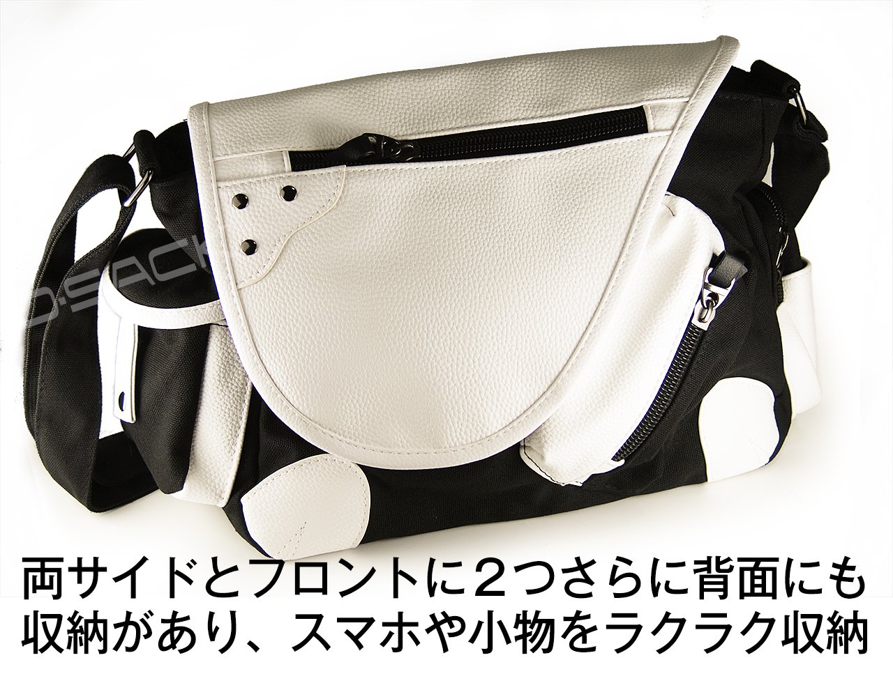 Front and back zipper pockets are attached, both sides are also equipped with small pockets so it is very convenient for storing small items such as regulars and keys.