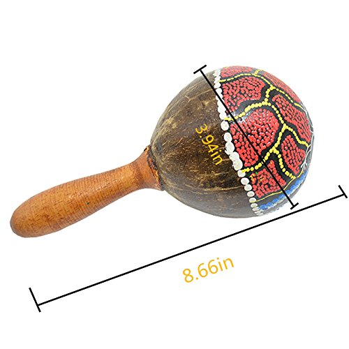 Specifications: Note: The pattern is random ! Material: Wood and coconut shell Item Size: length:8.6inch/22cm;the largest diameter:3.9inch/10cm Package Size:9.8 x 5.9inch / 25 x 15cm Package Weight: 200g Package Include:: 1 x Maracas 0