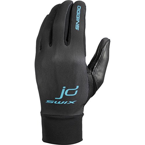 Studio : Swix Publisher : Swix Binding : Misc. Product Description You'd race the Nordic tracks without gloves if the Swix Women's JD Race Glove didn't have Your Race, Your Moment printed in friendly font on the palms. Sure the stretchy, breathable back-of-hand offers that special touch of protection your digits want when you're skiing your hardest, and the leather palm helps you keep a good grip on your poles, but it's mainly the message that you're after. 0