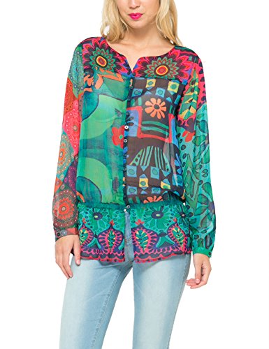 Desigual women's spring summer woven shirt long sleeves fun, modern design