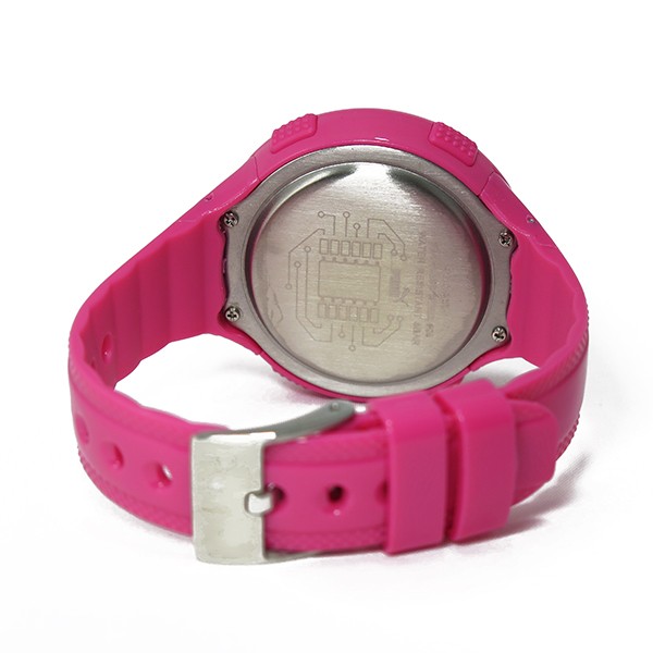 デジタル、5気圧防水、ストップウォッチ、ペドメーター(歩数計測機能)※消費カロリー/距離計算、目標歩数設定あり、アラーム、カレンダー、カラー:液晶(文字盤)、ピンク(ベルト)
