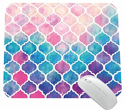 -. Title : Yakalla cool rainbow pastel watercolor moroccan pattern P.R.Ints Mouse Pad Small Size Round Gaming Non-Skid Rubber Pad 21X26CM