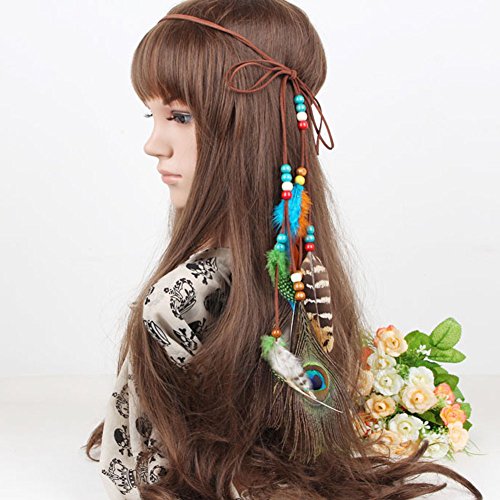 (BUYITNOW)/Accessories/Hats/DIRECT FROM USA/BUYITNOW Bohemia Colorful Feather Bead Headband Women Hippie Tassels Headpiece