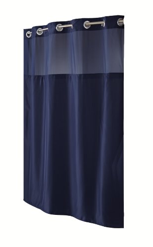 Hookless RBH40MY297 Fabric Shower Curtain with Built in Liner -Navy Blue