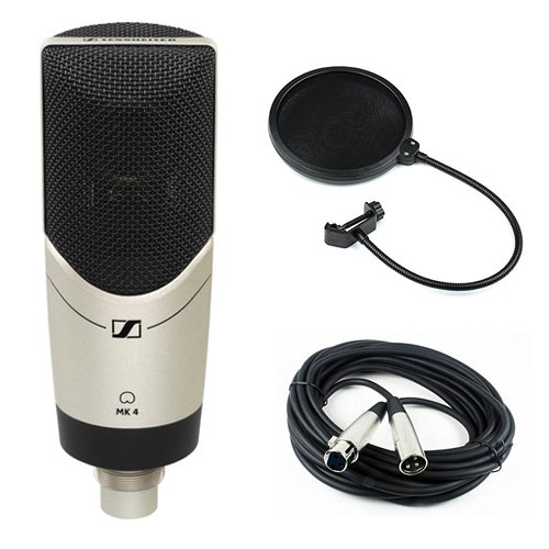Overview The MK 4 Studio Condenser Microphone from Sennheiser is a condenser microphone for home studio engineers, production studios, sound reinforcement and more. The MK 4 features a large-diaphragm 1" transducer for a full sound, wide-frequency response, and low noise. The element is shock mounted to eliminate structure borne noise and vibration. Its sensitivity and frequency response make it well suited for general vocal recording, instruments, amplifier cabinets, and more. It comes with a Pop Filter to improve the sound of your vocal recordings and a 20' XLR Cable that offers high quality XLR male and female connectors and is compatible with any XLR connection-microphones.