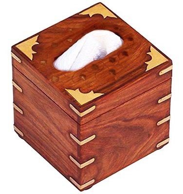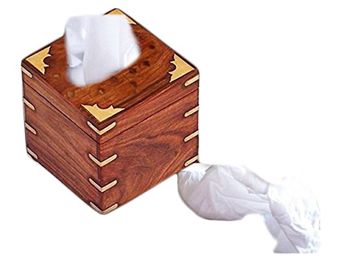 Christmas or Thanks Giving Day Gift, Brass Inlay Tissue Box Holder, Cover Square Paper Dispense, Wooden Tissue Box with Decorative Brass, Tissue Paper Holder, Tissue Holder, 5.5"