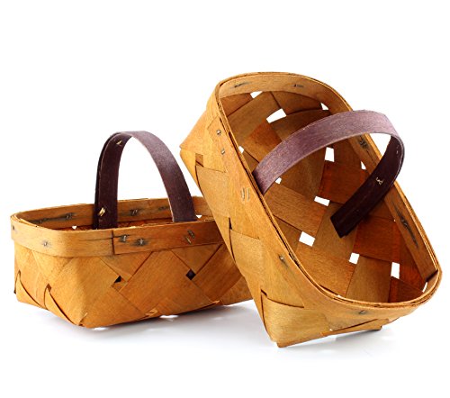Quart Size Diamond Weave Wooden Baskets (Two-Pack); Medium Brown Color Wood Baskets w/ Handles for Fruit, Veggies, & Gifts