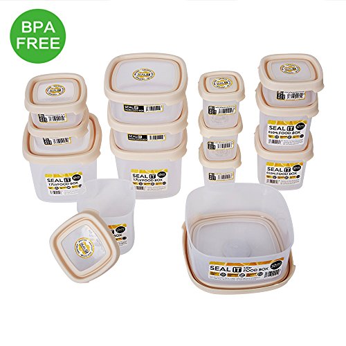 Dporticus Reusable Lunch Boxes Plastic Food Storage Container, BPA-Free, Airtight, Leakproof, Microwave, Freezer, Dishwasher Safe( Set of 14)