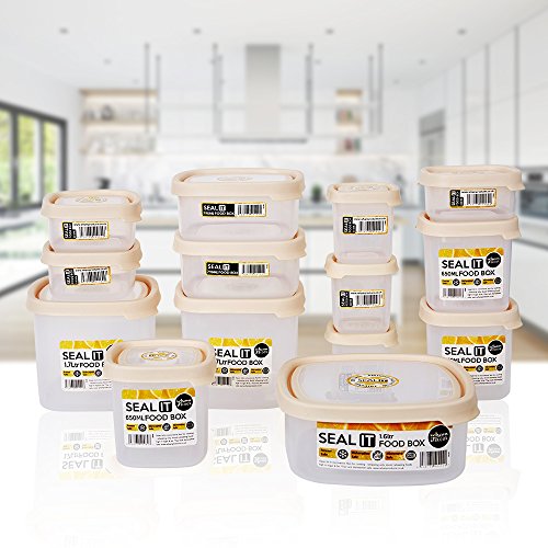 Set includes: 1 (1.66L size: 7.7“ x 6.8“ x 3.1“). 2 (1.7L size: 5.9“ x 5.1“ x 5.1“). 2 (0.8L size: 5.9“ x 5.3“ x 2.8“). 3(0.65L size: 4.“ x 3.5“x 4.2“) 3 (0.3L size: 4.3“ x 3.7“x 2.1“). 3(0.23L size: 3“ x 2.4“x 3“)