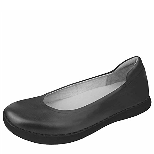 Did someone say NEW at #AlegriaShoeShop?! The Alegria Petal is unlike any ballet flat you've ever worn. The Petal in Black Nappa is a smooth, athletic ballet flat with a glove-like Italian leather upper and the addition of a padded heel bumper to provide maximum comfort. The flexible slip resistant outsole provides unimaginable support and stability making this your work attire shoe, black slacks shoe, or capris shoe! And like most Alegria shoes, the Alegria Petal Black Nappa has a generous toebox so toes can wiggle and breath. Add the patented memory foam blend removable insoles and you've got a match made in heaven!!Feature
