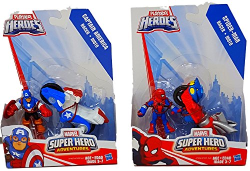 -. Binding : Toy -. Brand : R&R Toys and Things -. Color : Multicolored -. EAN : 0730052153453 -. Feature : DOUBLE THE FUN for your kids with this combo pack of Playskool Heroes Spiderman and Playschool Heroes Captain America! / YOUR KIDS AND TODDLERS will love this Captain America Shield Racer and Captain America figure! / YOUR KIDS AND TODDLERS will also love the Spiderman Web Racer and Spider-Man figure! / THESE BOYS ADVENTURE TOYS make awesome Birthday and Christmas Presents that your kids will play with for a long time! / THESE ACTION FIGURES FOR TODDLERS are recommended for ages 3-7. -. IsAdultProduct : 0 -. Label : Global Mktg -. Manufacturer : Global Mktg -. MPN : GM-PSCASP2 -. PartNumber : GM-PSCASP2 -. ProductGroup : Toy -. ProductTypeName : TOYS_AND_GAMES -. Publisher : Global Mktg -. Size : Small -. Studio : Global Mktg -. Title : Get This Boys Adventure Toys Combo Pack of Playschool Super Heroes Spiderman and Captain America Two of the Most Popular Action Figures For Kids and Toddlers -. UPC : 730052153453