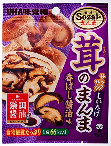 原材料:しいたけ、水飴、植物油脂、醤油シーズニング(粉末醤油、食塩、粉糖、黒糖、発酵調味料、酵母エキスパウダー)、粉末つゆ(食塩、糖類(ぶどう糖、砂糖)、たん白加水分解物混合物、こんぶ粉末、粉末醤油、かつお節粉末、いわし節粉末、さば節粉末、植物油、あじ節粉末、香辛料)/調味料(アミノ酸等)、香料、着色料(カラメル)、酸化防止剤(ビタミンE)、(一部に小麦・さば・大豆・ゼラチンを含む)