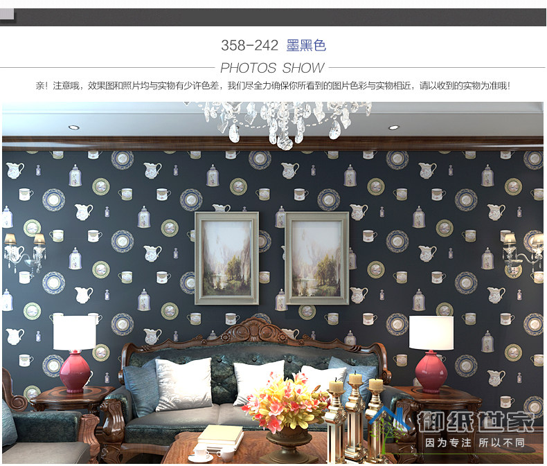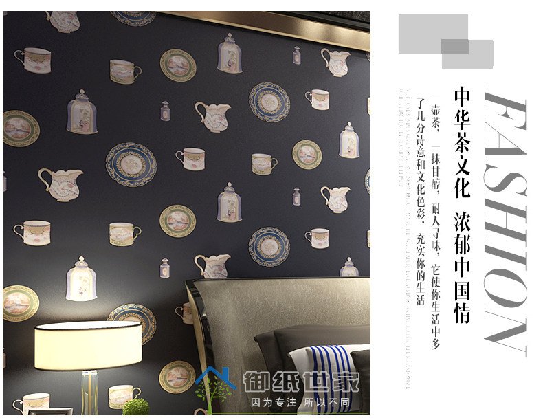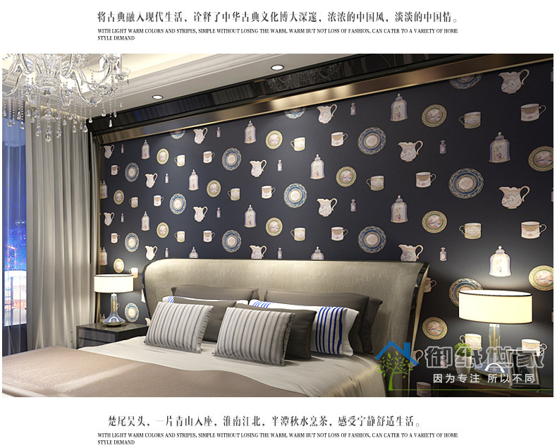 御纸世家现代中式进口无纺布墙纸客厅书房玄关电视背景墙纯纸壁纸