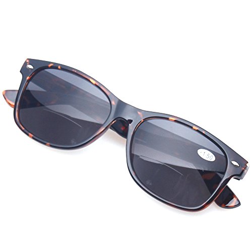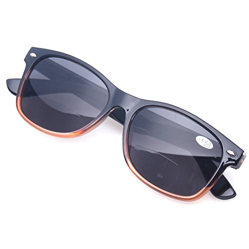 Product Description Sunglasses and reading Glasses in one No more squinting in the sun No need to strain your eyes or wear to pairs specs when you read in bright sunlight. these stylish sunglasses are actually tinted reading glasses,so you can read in comfort , Ideal for holidays or reading in garden. Specification: Width of the forehead frame :140mm/ 5.51" (approx.) Lens Height:40mm/ 1.57" (approx.) Lens Width : 54mm/ 2.13" (approx.) Leg Length :145mm/ 5.71" (approx.) Color :Black,Brown,Gray,Demi(Tortoise). Material : PC Frame, PC Lens Diopter available: 1.00/ 1.50/ 2.00/ 2.50/ 3.00/ 3.50 Note: Due to the difference between different monitors, the picture may not reflect the actual color of the item. Thank you! Size for manual measurement, there may be a 0 to 1 cm error, belongs to the normal phenomenon. Package includes: 1 x Reading Glasses