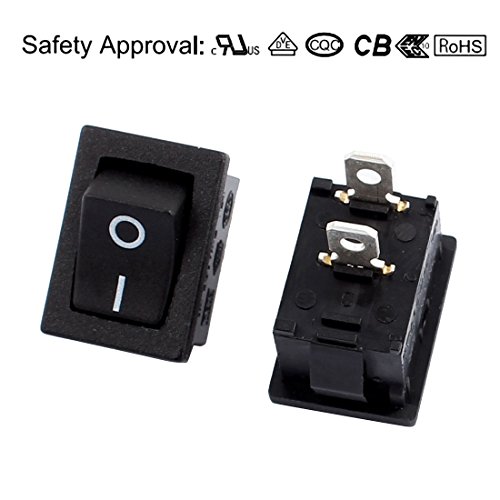 uxcell 2 Pcs SPST 2 Position ON/OFF 2 Terminal Rocker Switch AC 250V/10A 125V/12A UL Listed