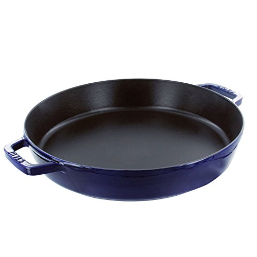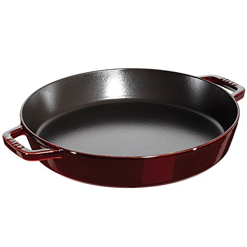 The Staub fry pan browns foods beautifully, be it chicken breasts, potatoes, or bacon. The enameled black matte interior imparts texture, promoting exceptional browning. Cast iron offers steady, even heat distribution, so the temperature of the pan won't drop as you cook. Low, curved sides make it easy to flip the food, which releases easily.Staub enameled cast iron cookware is the choice of the world's best chefs. With exceptional durability, it is perfect for day-to-day use in both gourmet home kitchens and prestigious restaurants around the world. Each piece transitions beautifully from the kitchen to the table. Built to last a lifetime, these heirloom pieces can be passed from generation to generation.Feature