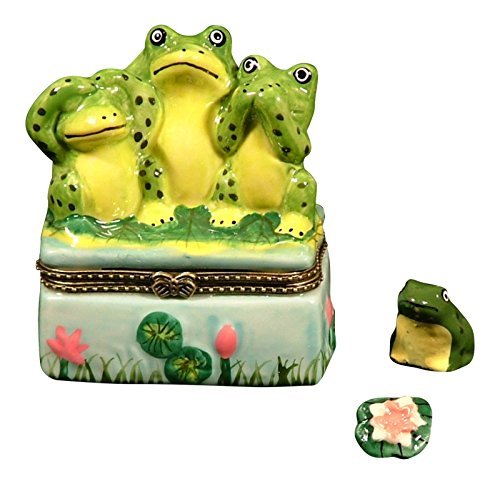 -. Title : See No Hear No Say No Evil Frogs Hinged Trinket Box