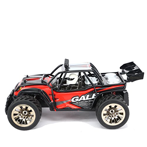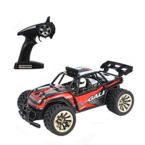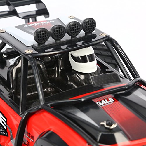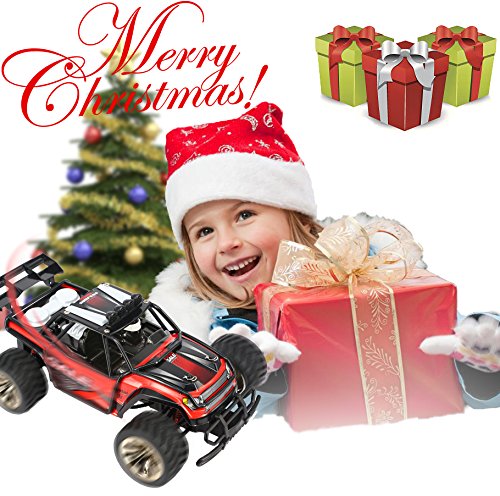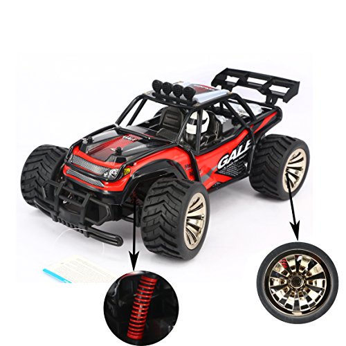 Main Features: 2.4GHz transmitter power ensures the strong anti-jamming capability. 2 wheel drive shows a stable and fast control. 1/16 Scale makes the rc car cooler, simulate its structure and control from real. 50m control distanc,Max to 15km/h high speed theoretically, challenge the limit, just enjoy the race with friends. The size and speed of the truck fits not only kids, but adults. Realistic desert buggy looks: it like a real desert buggy and even looks the part thanks to 1/16 scale detailed design, desert buggy style body, roll cage and driver cockpit. Easy to use: pistol grip style transmitter. Pistol grip style transmitter make it easy to control even a 5 years kid 15mins battery life: included usb charger gives you the convenience of charging.