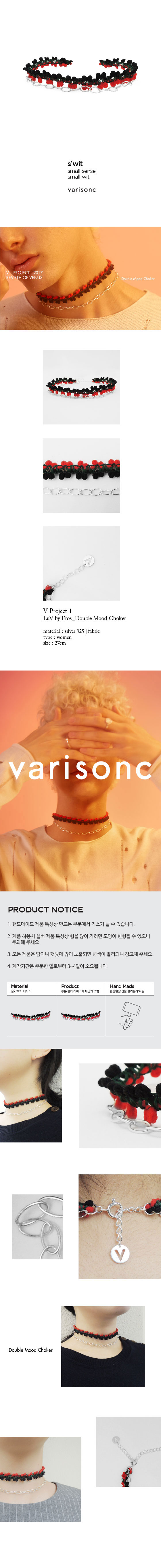 - 주문시 유의사항 : - 제작기간은 주문한 일로부터 3~4일이 소요됩니다. - 핸드메이드 제품 특성상 만드는 부분에서 기스가 날 수 있습니다. 실버제품 특성상 힘을 많이 가하게 되면 모양이 변형될 수 있으니 주의해 주세요. - 제주 및 도서산간 지역은 추가배송비(3,000원)가 부과됩니다. Luv by Eros_Double Mood Choker 패브릭과 체인 두 가지 매력을 동시에 느낄 수 있어 더욱 유니크하고 매력적인 두 줄 초커입니다. 살짝 타이트한 투톤 컬러 레이스와 늘어뜨린 체인이 어우러져 톡톡 튀는 사랑스러움과 나른한 신비로움을 동시에 느낄 수 있는 아이템입니다.