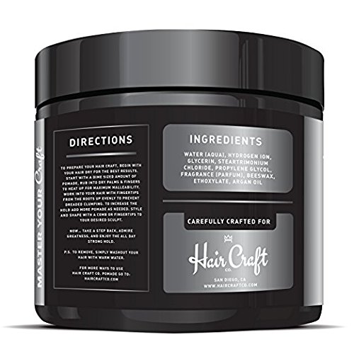 - 4OZ OF GREATNESS- We were tired of those tiny 2oz pomade jars that run out after just a few days. Our Hair Craft Co. pomade is the BEST quality formula, allowing you to use less while maintaining your desired hairstyle all day. Style your hair without frustration, save money, and stay FRESH.