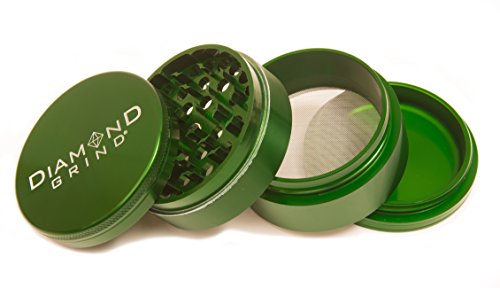 Diamond Grind 4 Piece Aluminum Herb Grinder with screen 63mm (2.50") GREEN