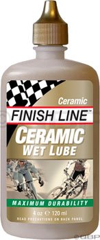 ReleaseDate : 2009-09-01 Studio : Finish Line Publisher : Finish Line Binding : Sports Product Description Ceramic WET™ is Finish Line’s most advanced and most effective racing lubricant. This wet-style full synthetic lubricant is enhanced with a nano-sized platelets of boron nitride and micron particles of fluoropolymer. As Ceramic WET builds it’s ceramic coating on the frictional surfaces of a drivetrain, cyclists will feel the smoothness and appreciate the added quietness. Ceramic WET ensures maximum drivetrain efficiency. Ceramic WET’s extreme durability, amazing smoothness and ultimate quietness will exceed the expectations of most cyclists! Ceramic WET is a full water-proof lubricant, so it can be used in all disciplines: Mountain bike, cyclo-cross, road and track racing. Application tips: Apply generously to clean chain (Degrease, rinse with water and then dry.) Work in, wipe excess. Reapply after 1st ride to complete ceramic coating process. NOTE: The white ceramic particles may turn grey or black over time. This discoloration is normal and will not compromise performance. After several applications this will lessen. 0