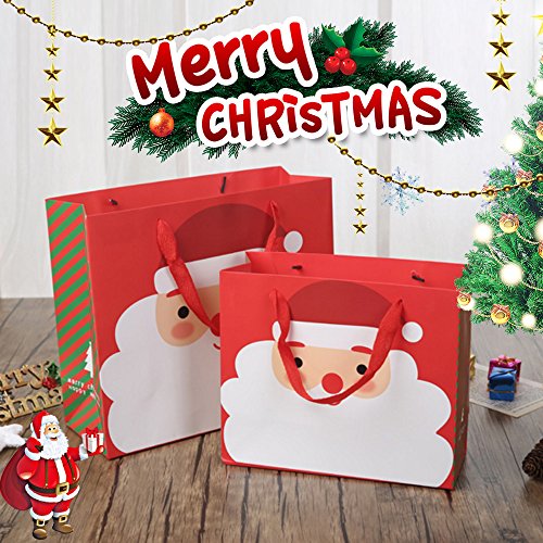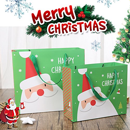 ※CHRISTMAS THEME COLOR DESIGNS: Our Christmas gift bags have bright color and festive atmosphere, reasonable color matching. 2 newest designs: Santa Designs Green Christmas Bag and Santa Designs Red Christmas Bag with handles.