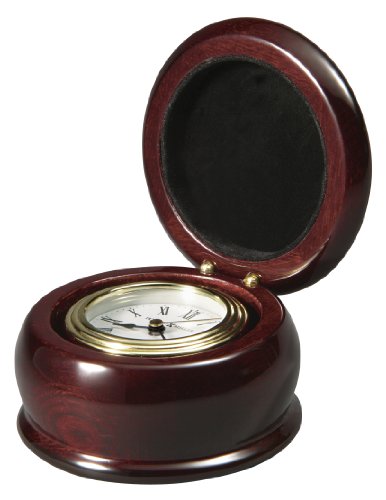 The Westport Table Clock by Howard Miller is a gimbaled clock that tilts for easy viewing, and is housed in a high-gloss Rosewood Hall-finished round box with felt-lined lid and felt bottom.Feature